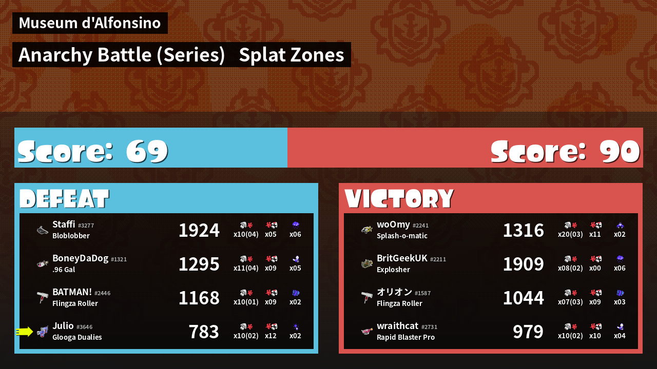 | Mode | Splat Zones - Anarchy Battle (Series) | ||