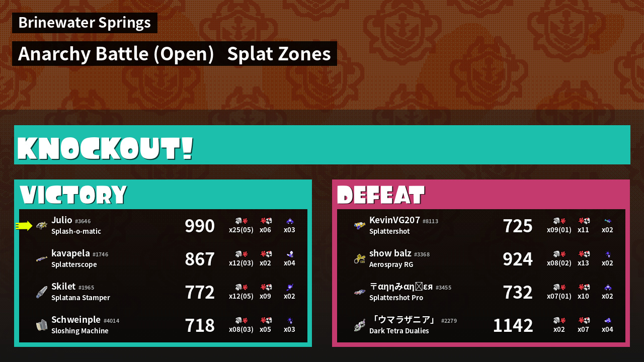 | Mode | Splat Zones - Anarchy Battle (Open) | ||