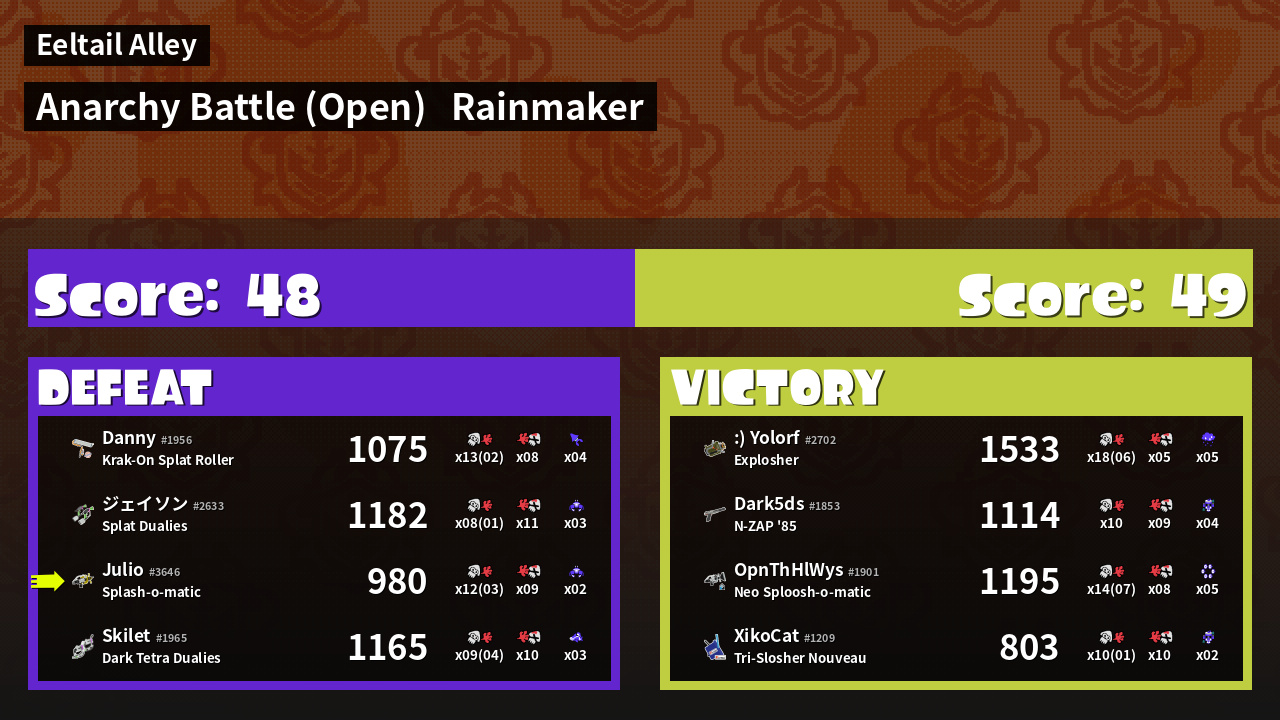 | Mode | Rainmaker - Anarchy Battle (Open) | ||
