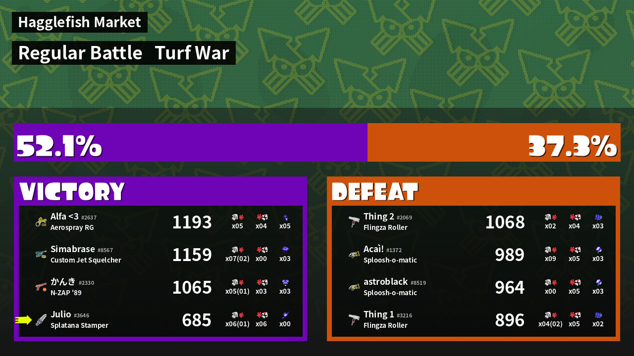 | Medals | #1 Enemy Splatter #1 Base Defender First Splat! | ||||