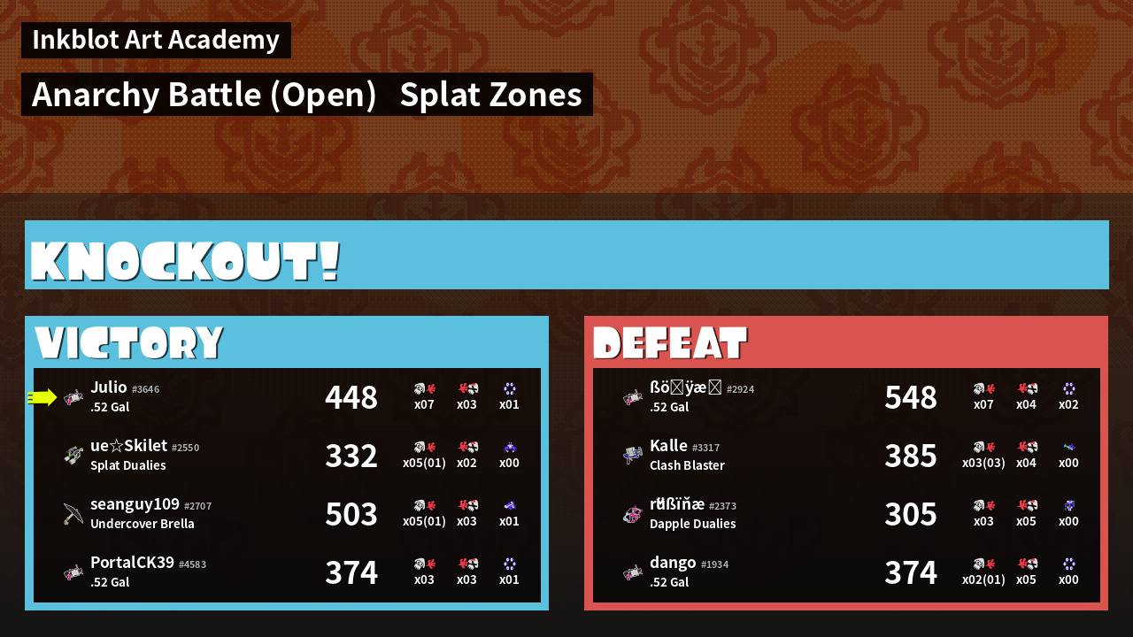 | Mode | Splat Zones - Anarchy Battle (Open) | ||