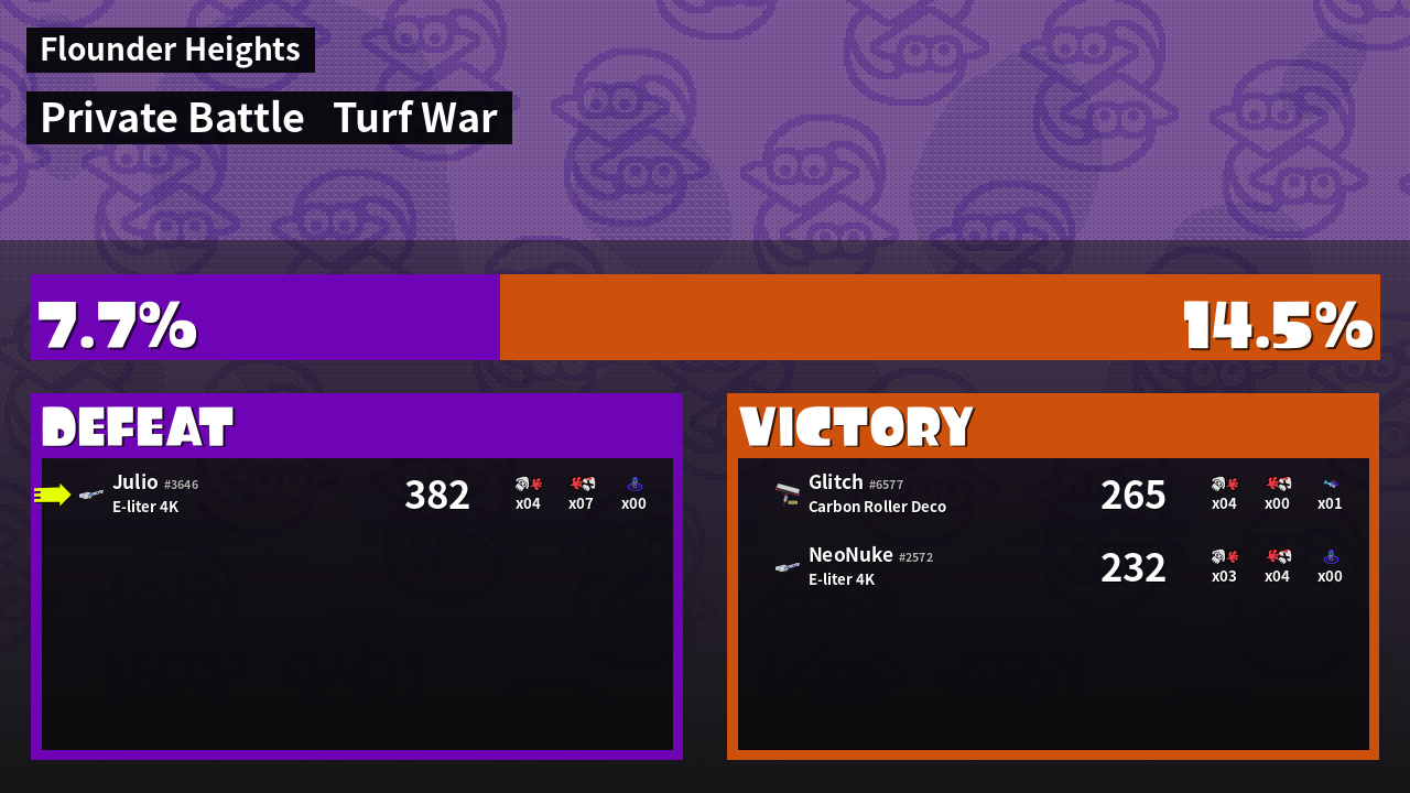 | Mode | Turf War - Private Battle | ||