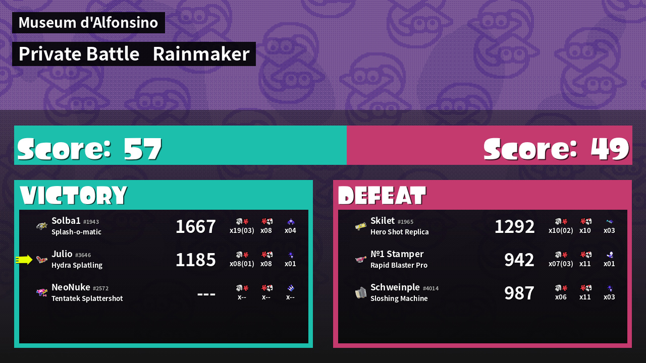 | Weapon | Hydra Splatling ( Autobomb / Booyah Bomb) | ||