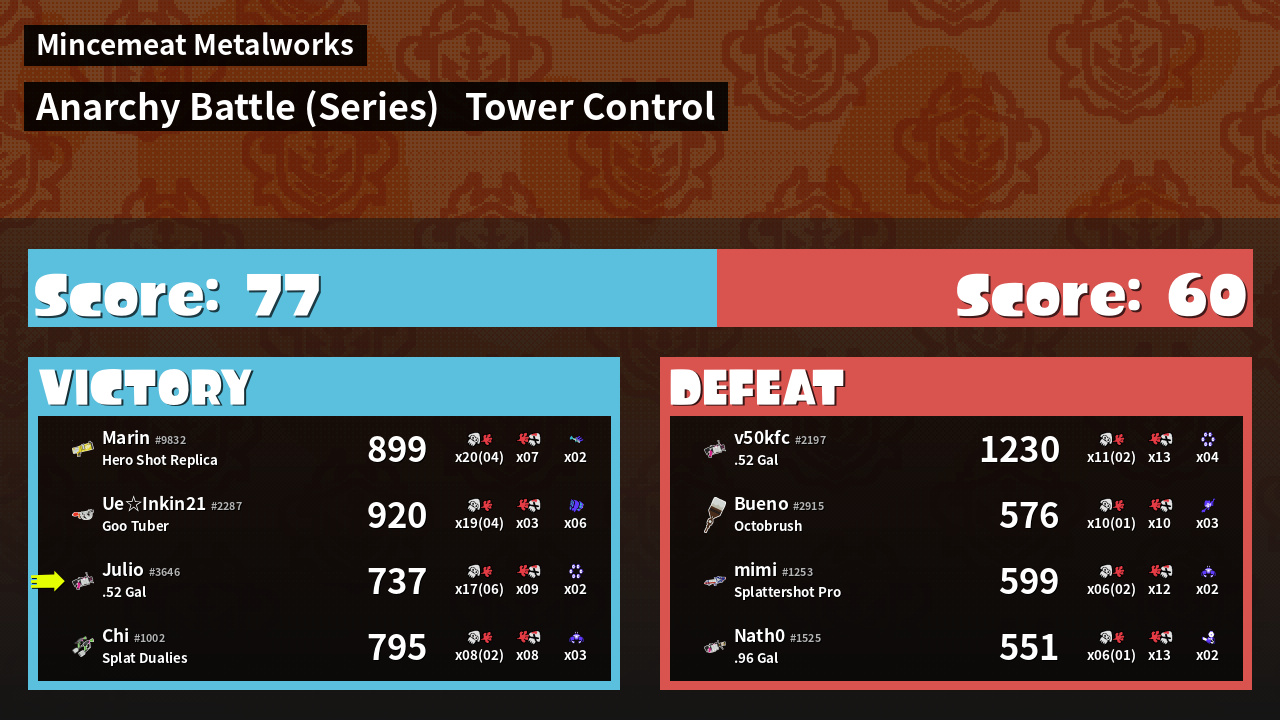 | Medals | #1 Splat Assister #1 Checkpoint Breaker #1 Ground Traveler | ||