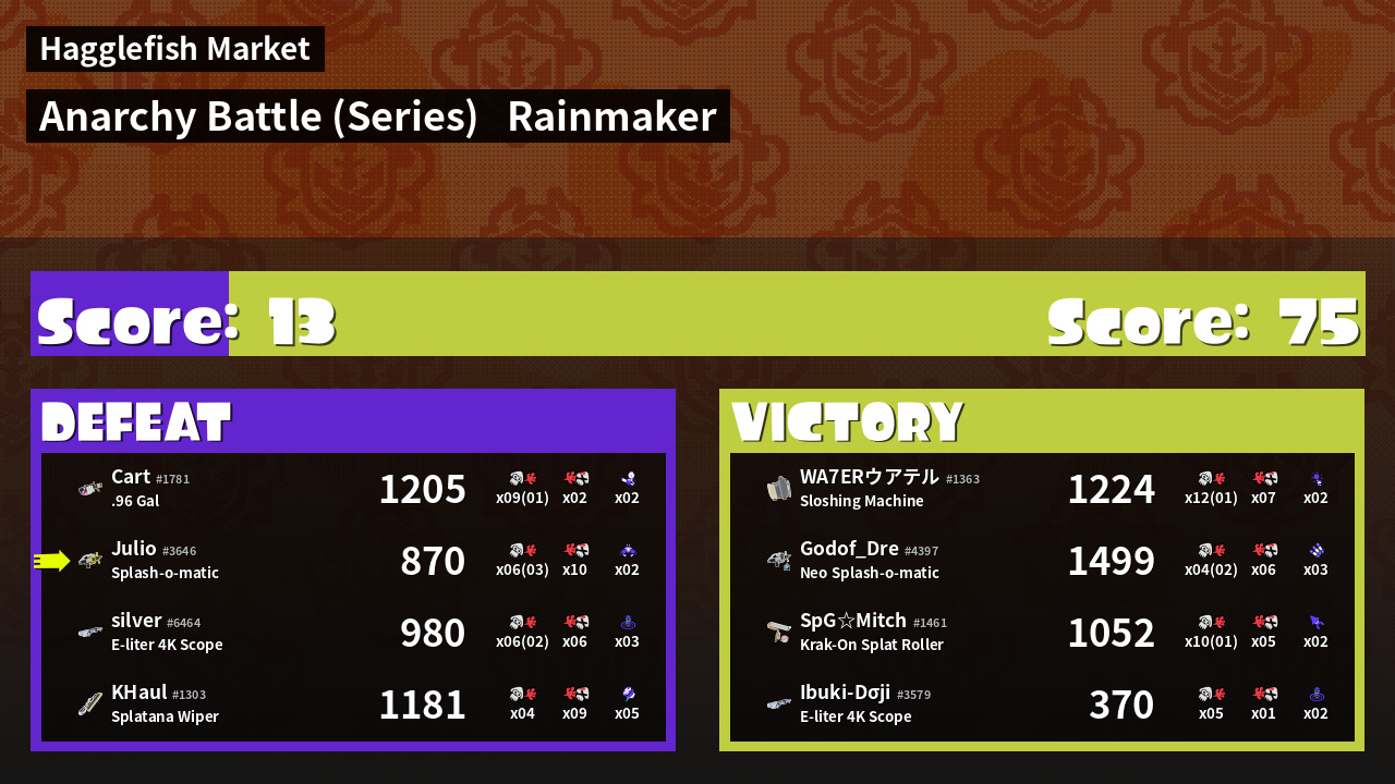 | Medals | #1 Score Booster Record-Score Setter #1 Splat Assister | ||