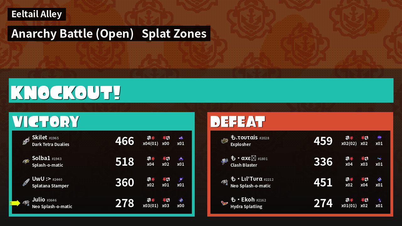 | Mode | Splat Zones - Anarchy Battle (Open) | ||