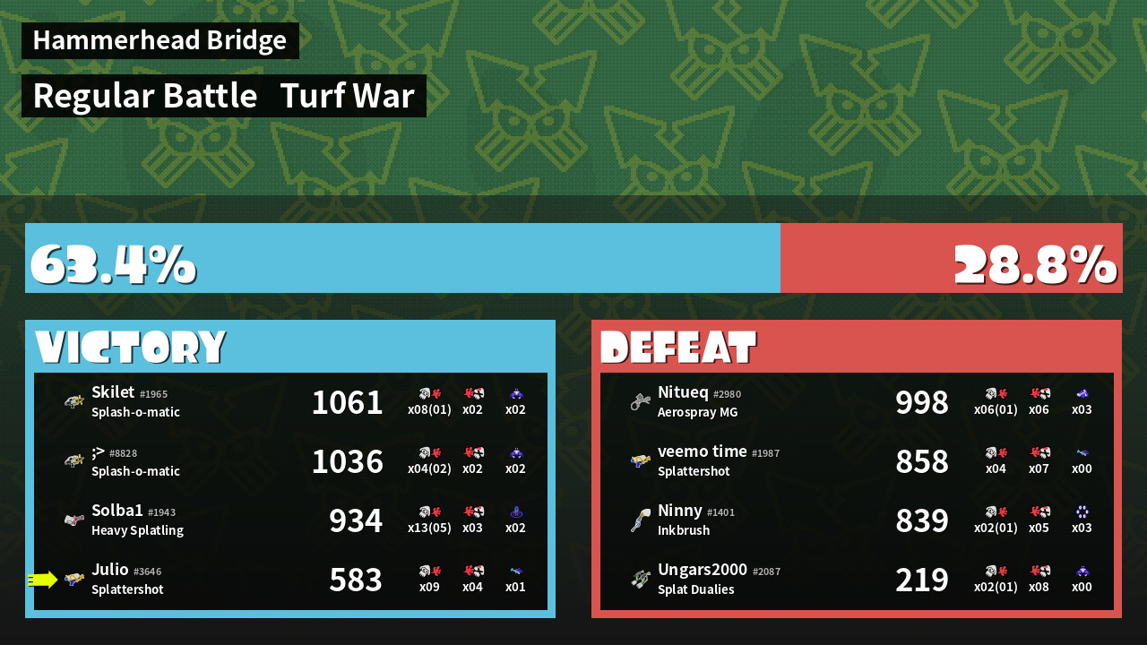 | Mode | Turf War - Regular Battle | ||