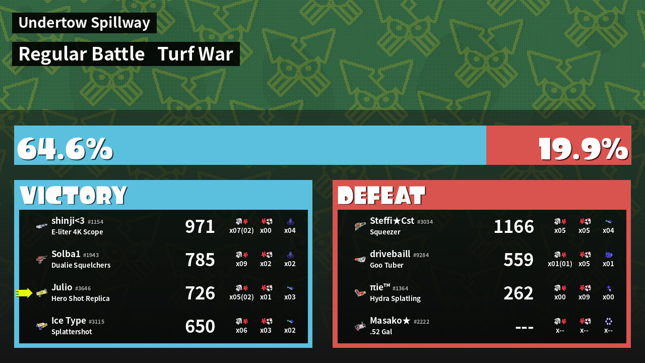 | Medals | #1 Splat Assister #1 Trizooka User #2 Home-Base Inker | ||