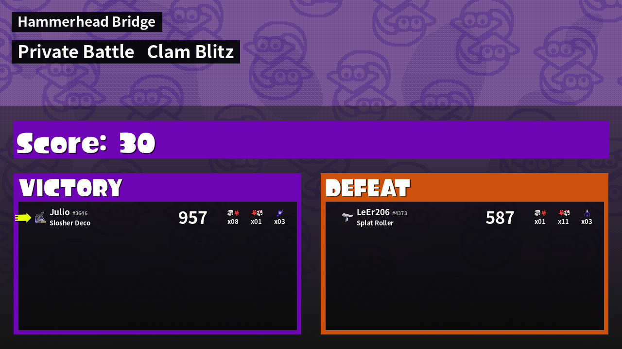 | Mode | Clam Blitz - Private Battle | ||