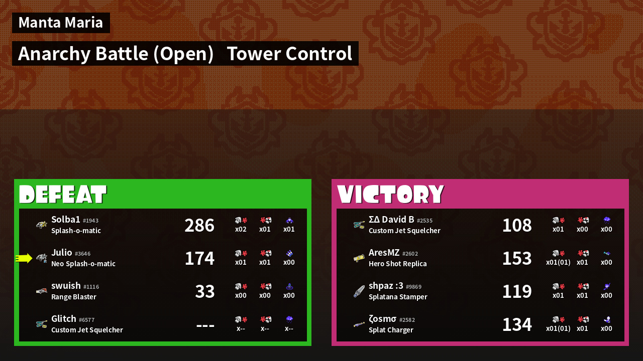 | Mode | Tower Control - Anarchy Battle (Open) | ||||
