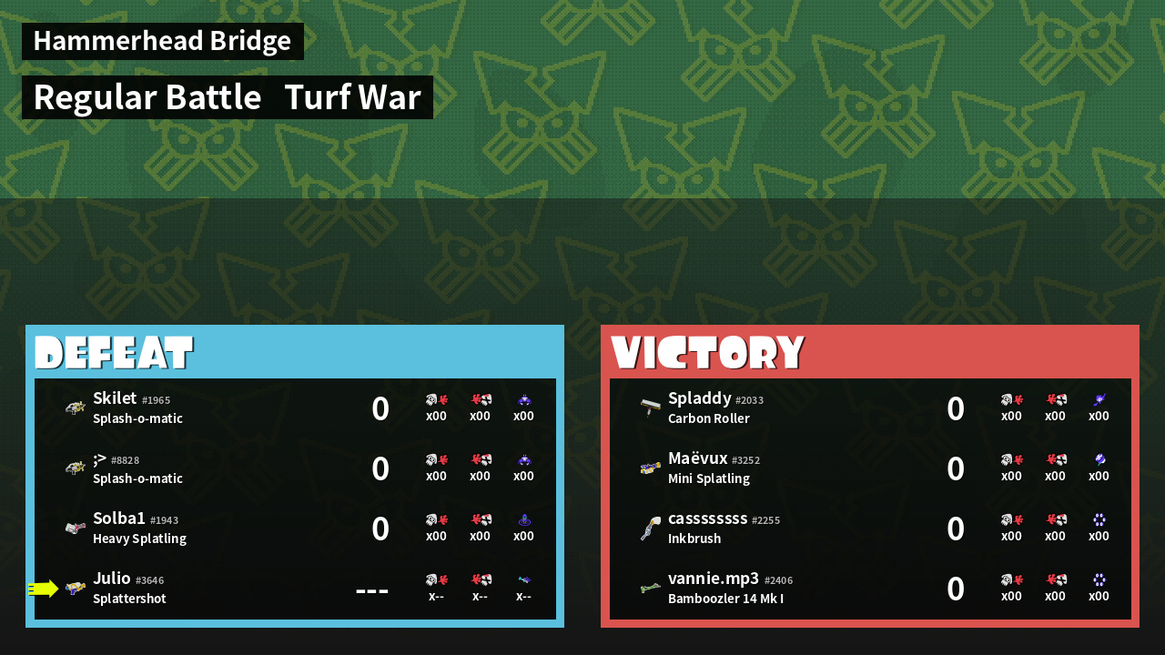 | Weapon | Splattershot ( Suction Bomb / Trizooka) | ||
