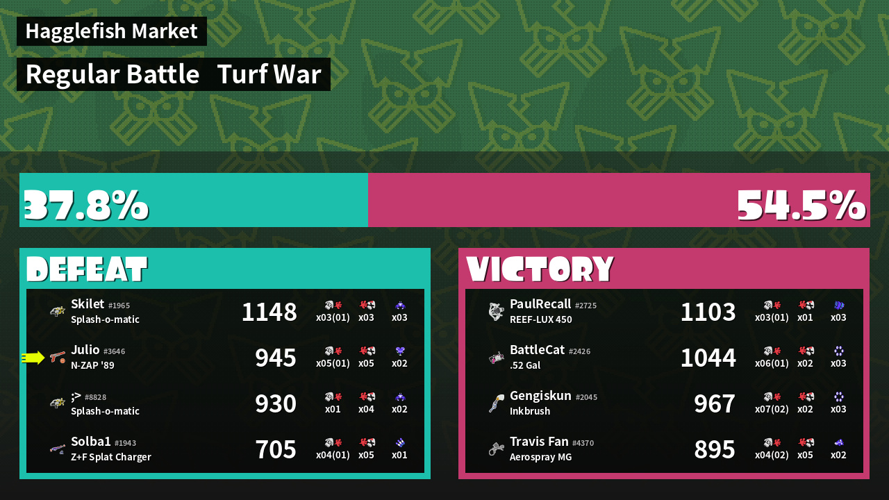 | Medals | #1 Overall Splatter #1 Enemy Splatter #1 Splat Assister | ||