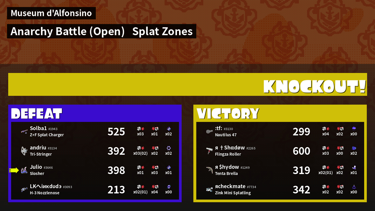 | Mode | Splat Zones - Anarchy Battle (Open) | ||
