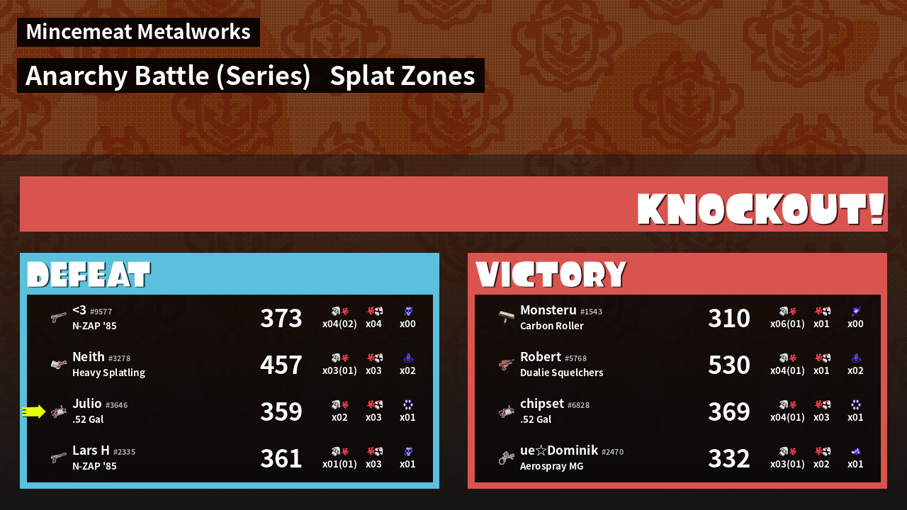 | Mode | Splat Zones - Anarchy Battle (Series) | ||