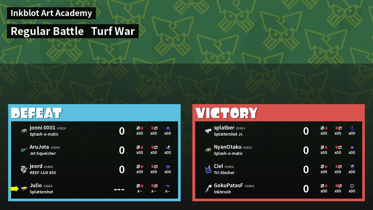 | Weapon | Splattershot ( Suction Bomb / Trizooka) | ||