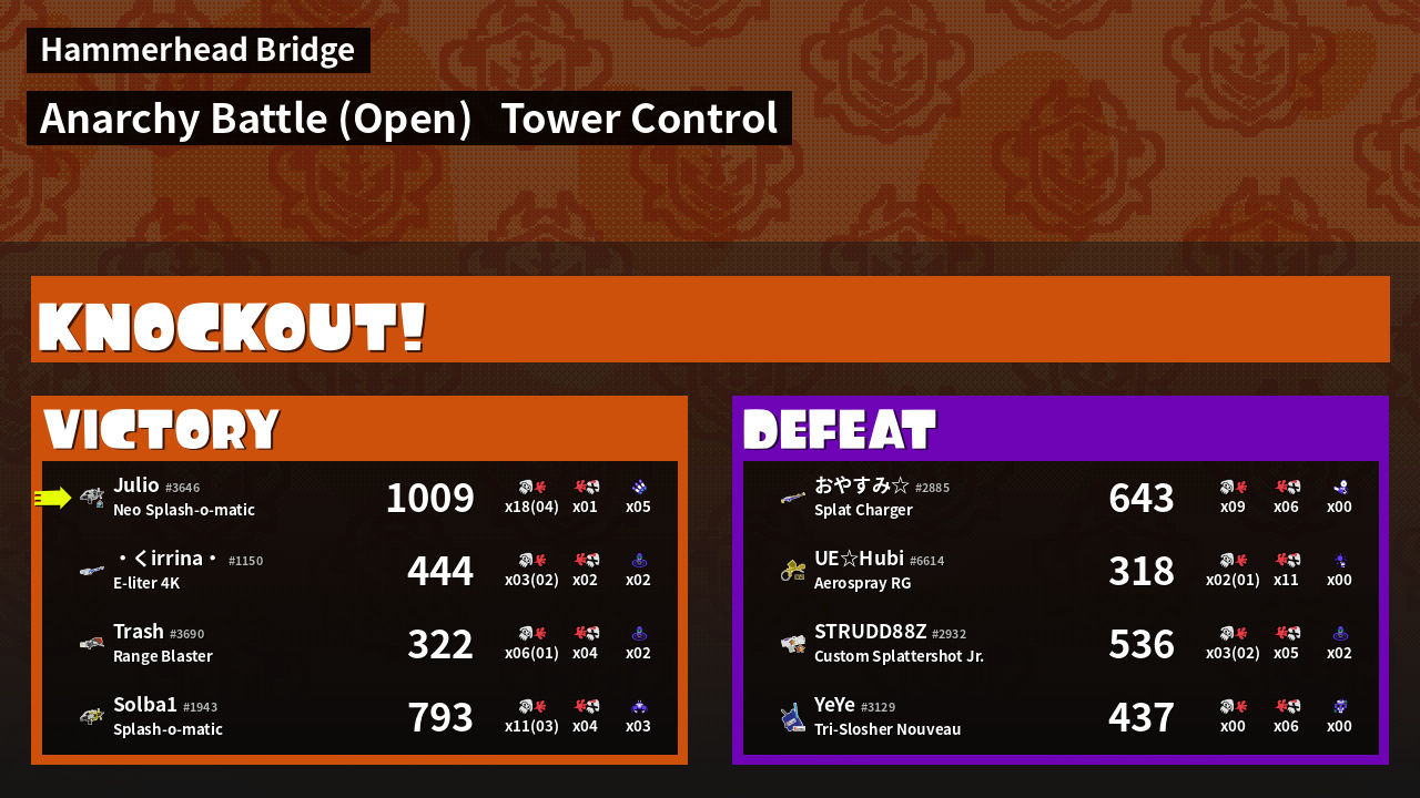 | Medals | #1 Overall Splatter #1 Turf Inker #1 Popular Target | ||||
