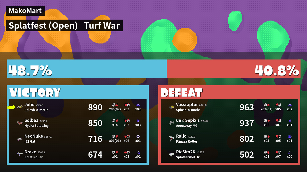 | Medals | #1 Turf Inker #1 Enemy-Base Inker #1 Splat Assister | ||