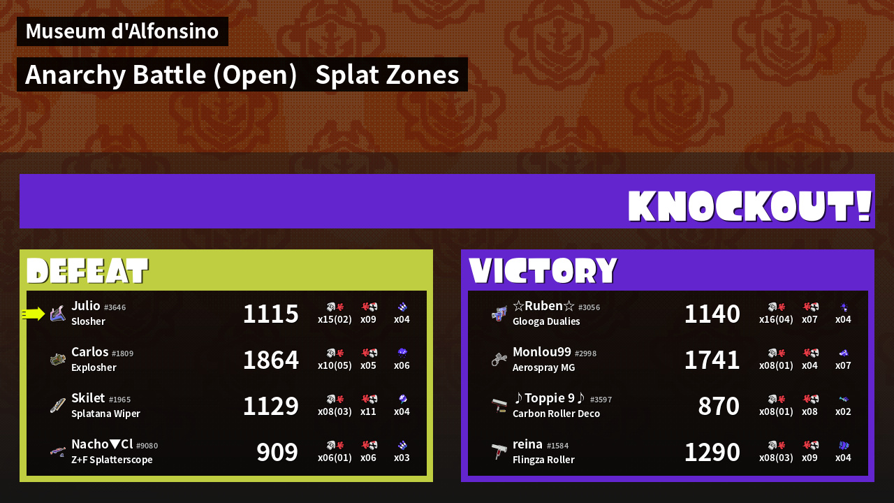 | Mode | Splat Zones - Anarchy Battle (Open) | ||