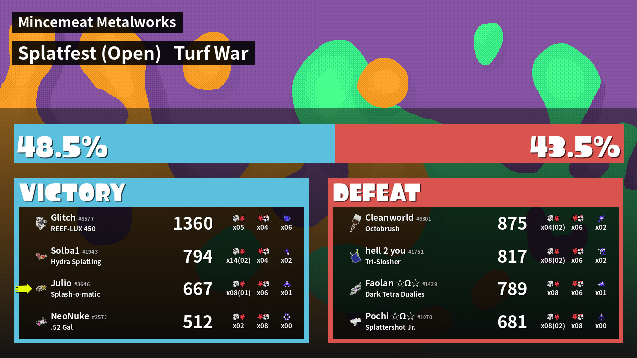| Medals | #1 Damage Taker First Splat! #2 Overall Splatter | ||