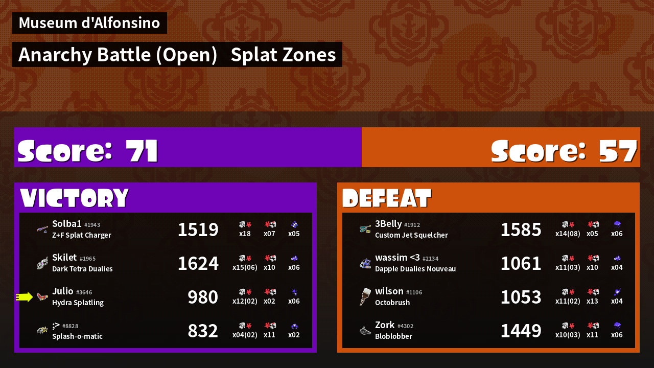 | Mode | Splat Zones - Anarchy Battle (Open) | ||