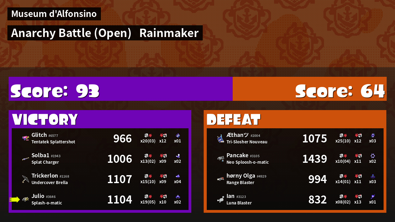 | Mode | Rainmaker - Anarchy Battle (Open) | ||