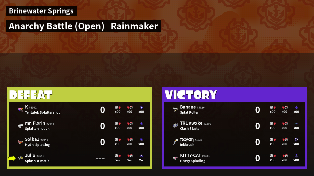 | Mode | Rainmaker - Anarchy Battle (Open) | ||