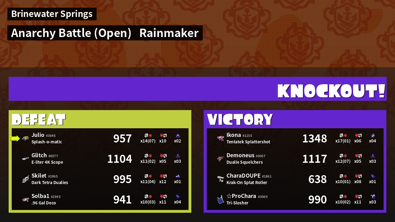 | Medals | #1 Overall Splatter #1 Popular Target #1 Splat Assister | ||