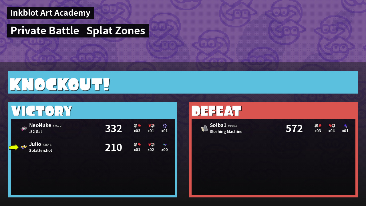 | Mode | Splat Zones - Private Battle | ||