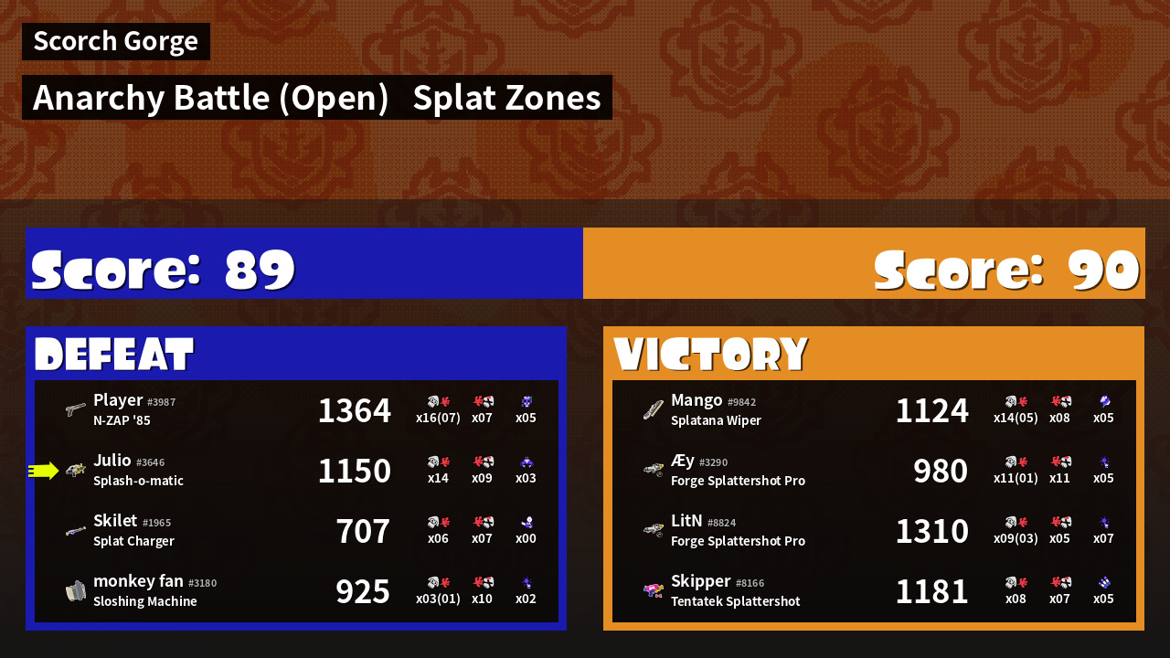 | Mode | Splat Zones - Anarchy Battle (Open) | ||