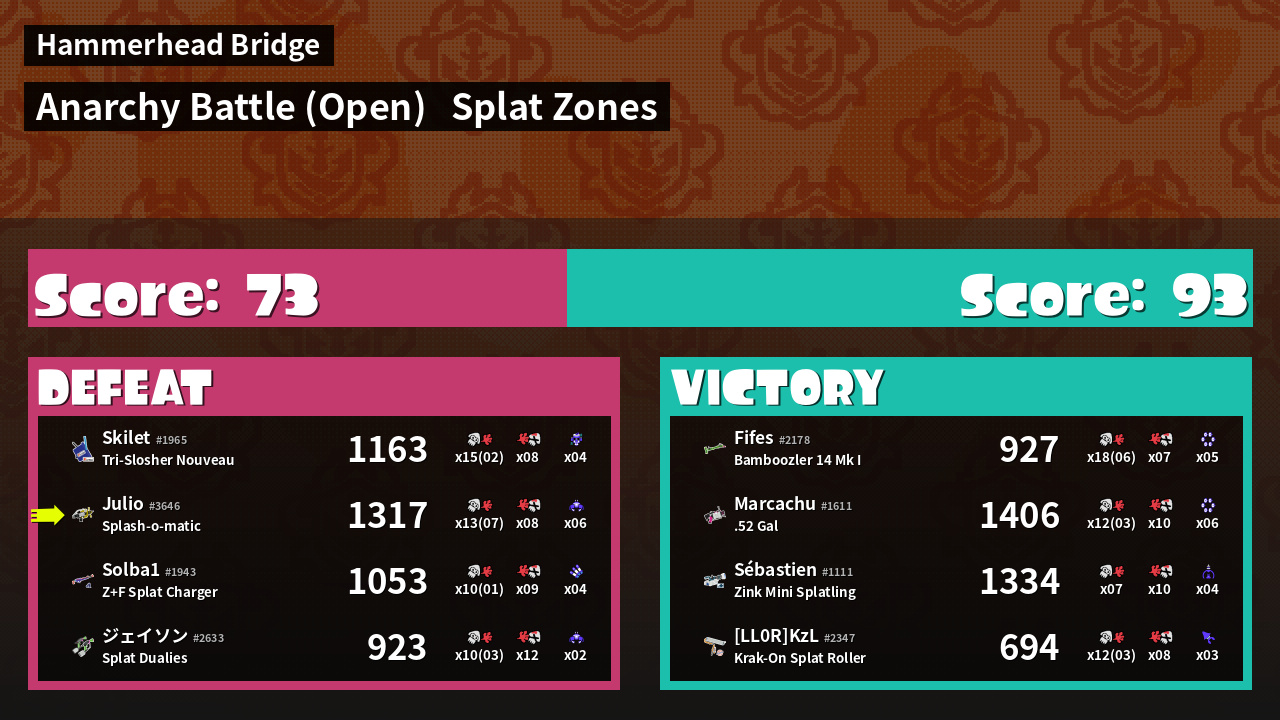 | Mode | Splat Zones - Anarchy Battle (Open) | ||