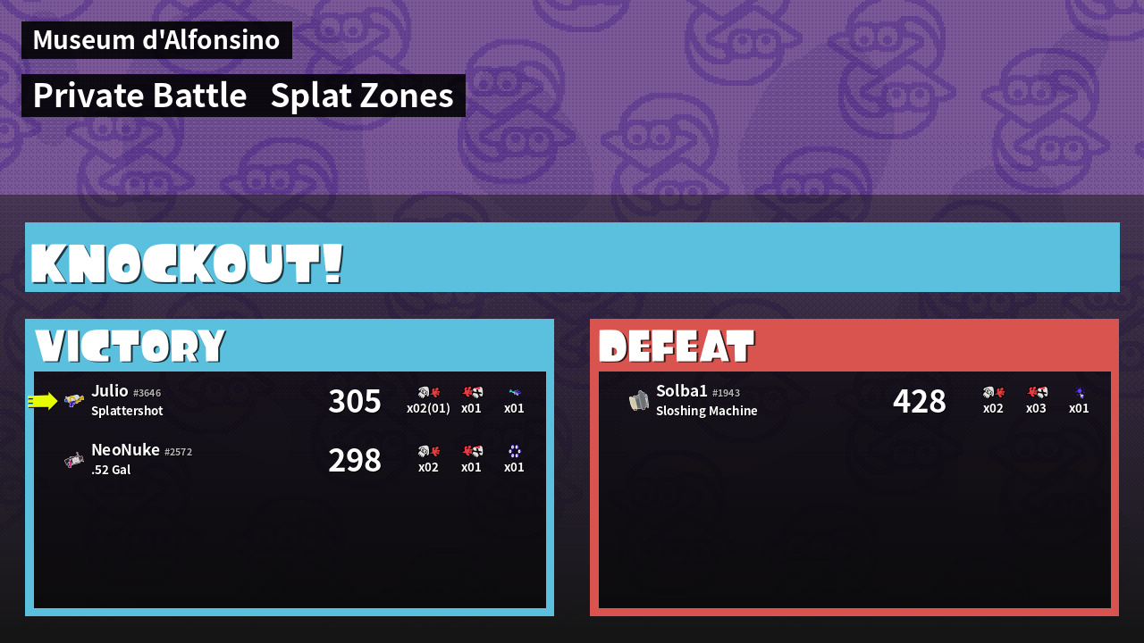 | Mode | Splat Zones - Private Battle | ||