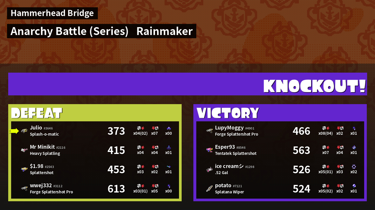 | Medals | #1 Overall Splatter #1 Popular Target #1 Splat Assister | ||