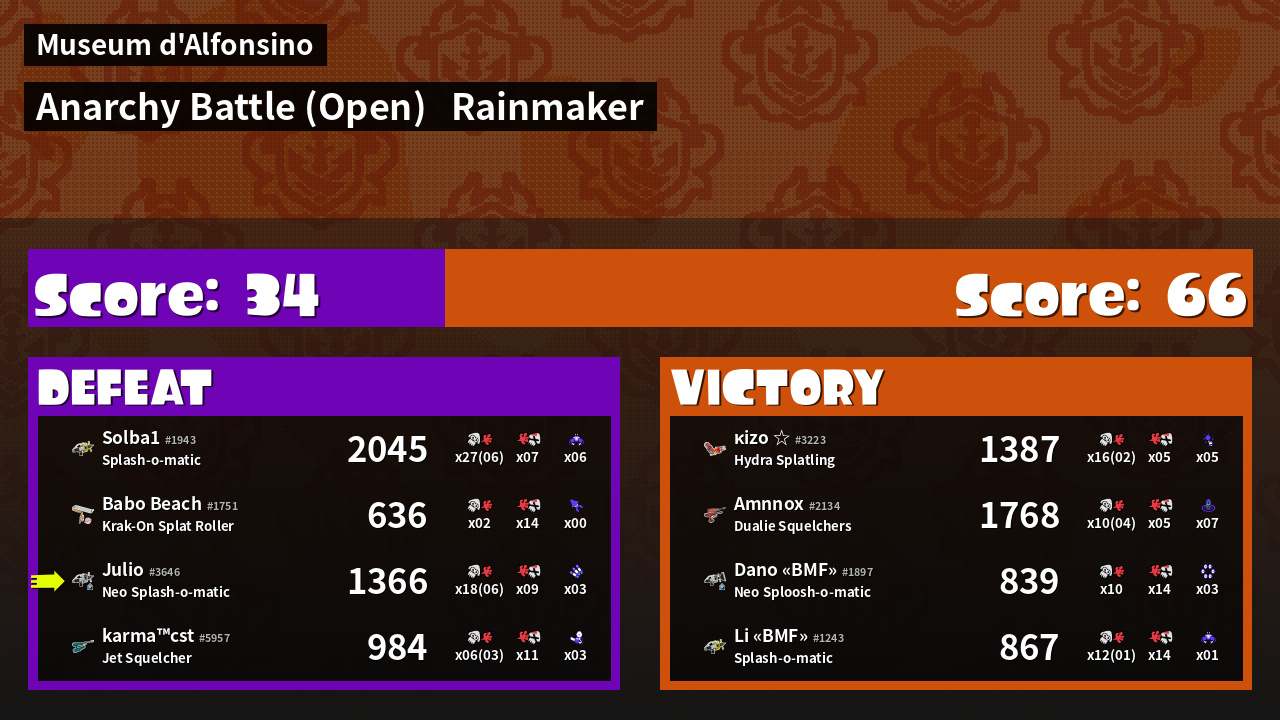 | Mode | Rainmaker - Anarchy Battle (Open) | ||||