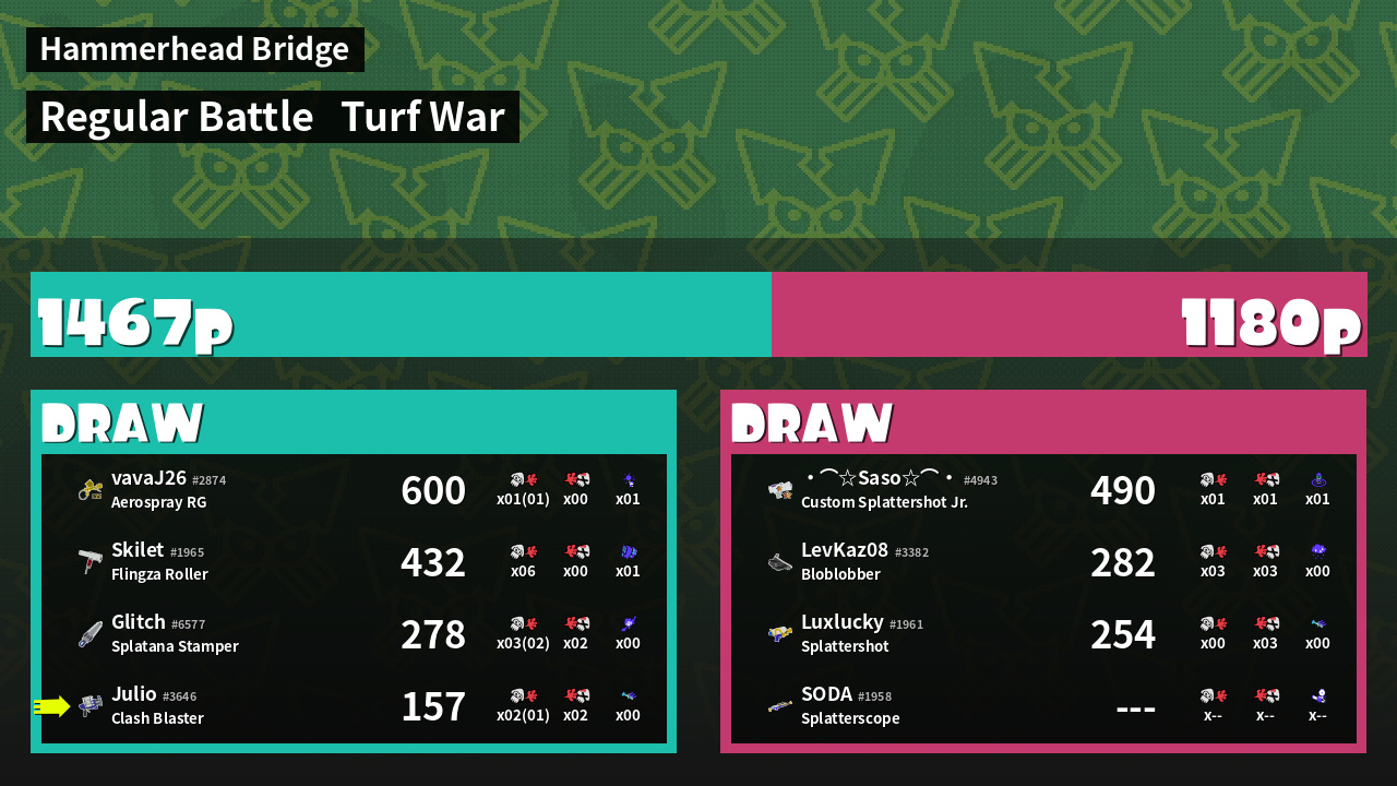 | Mode | Turf War - Regular Battle | ||