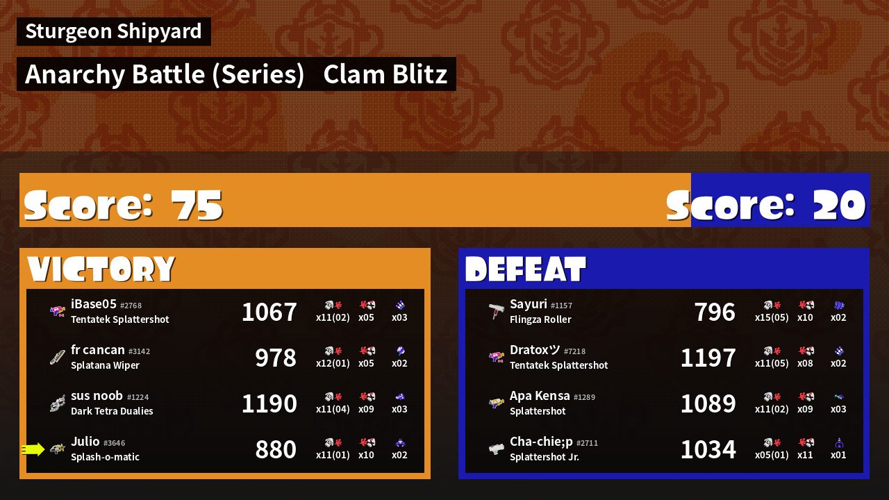 | Mode | Clam Blitz - Anarchy Battle (Series) | ||