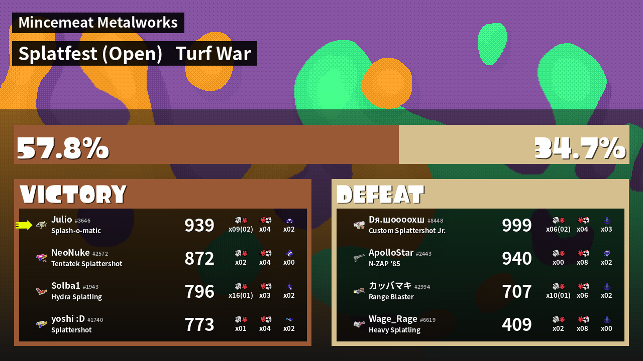 | Medals | #1 Turf Inker #1 Enemy-Base Inker #1 Splat Assister | ||