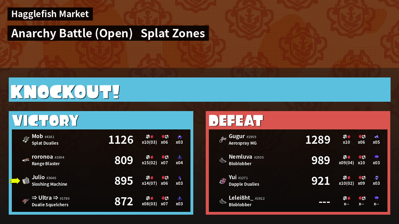 | Mode | Splat Zones - Anarchy Battle (Open) | ||