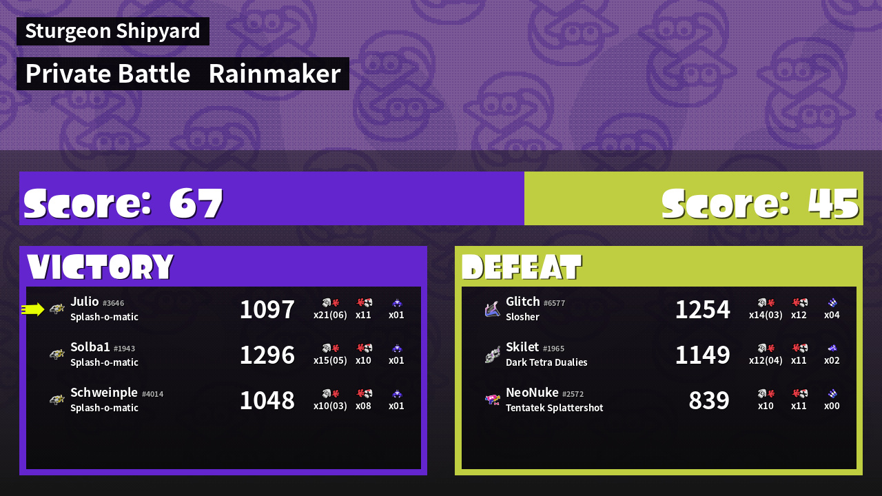 | Medals | #1 Overall Splatter #1 Popular Target #1 Enemy Splatter | ||