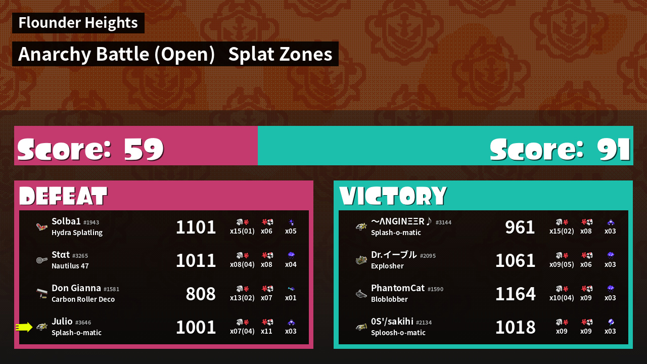 | Mode | Splat Zones - Anarchy Battle (Open) | ||