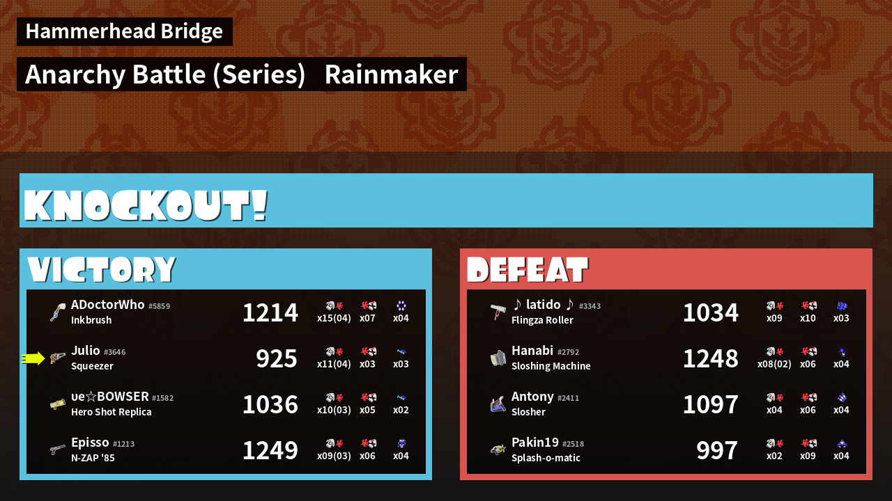 | Medals | #1 Popular Target #1 Super Jump Spot #1 Splat Assister | ||