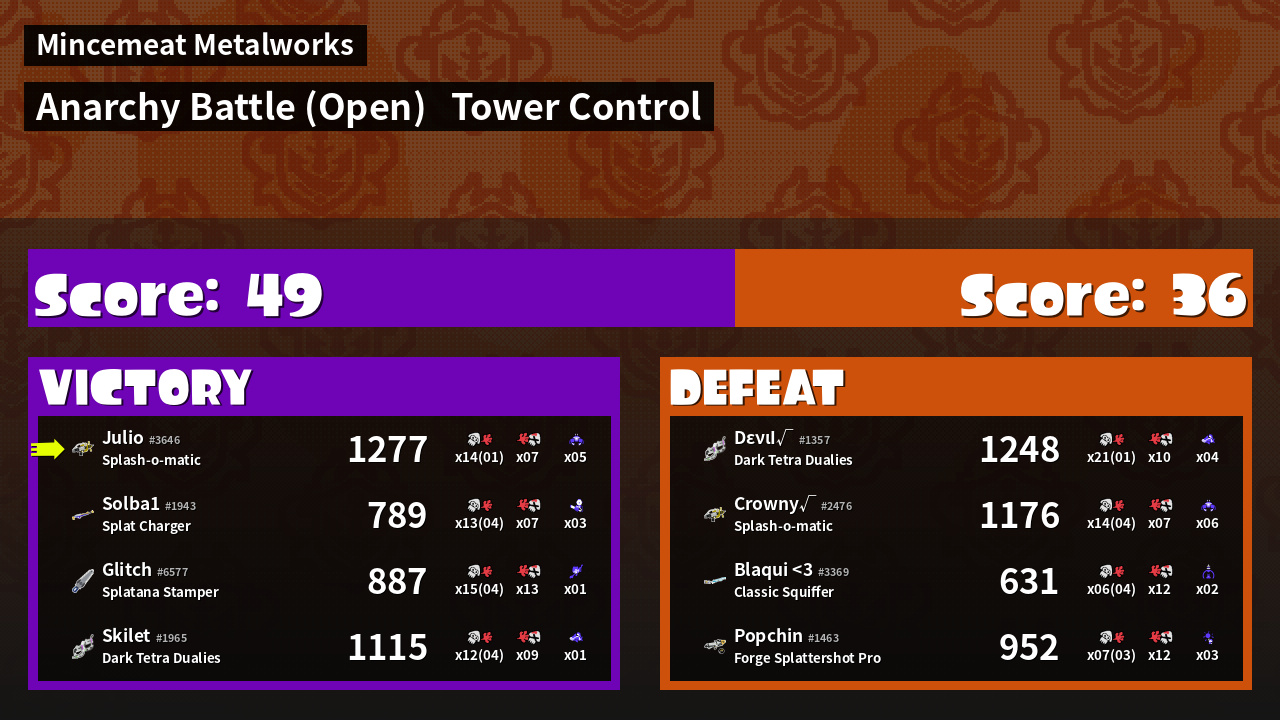 | Mode | Tower Control - Anarchy Battle (Open) | ||