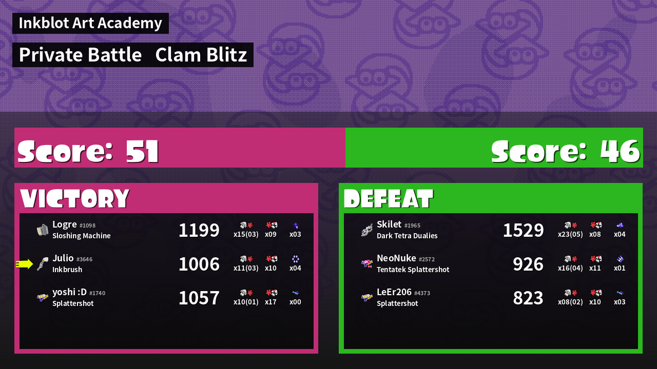 | Medals | #1 Score Booster #1 Clam Carrier #1 Splat Assister | ||