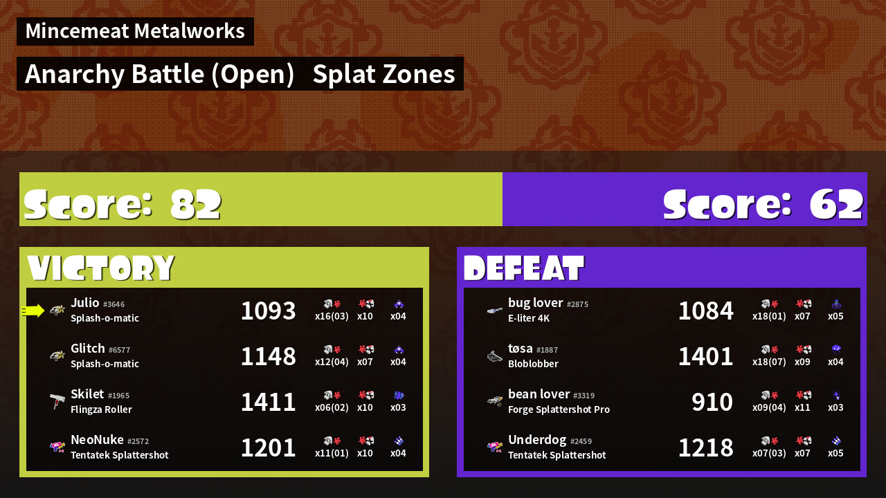 | Mode | Splat Zones - Anarchy Battle (Open) | ||