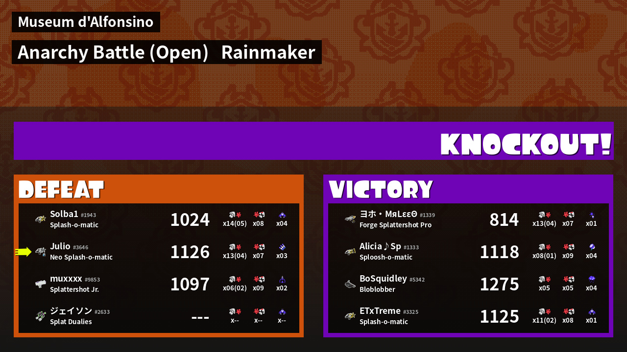 | Mode | Rainmaker - Anarchy Battle (Open) | ||||