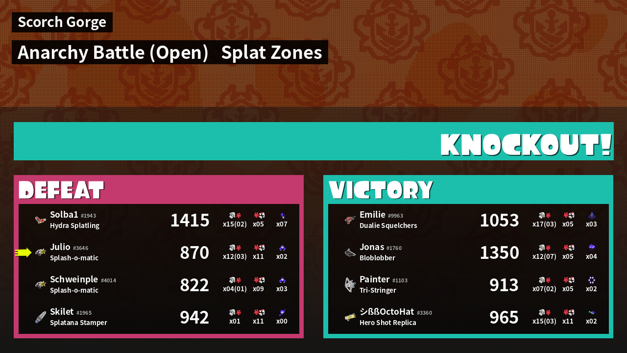 | Mode | Splat Zones - Anarchy Battle (Open) | ||