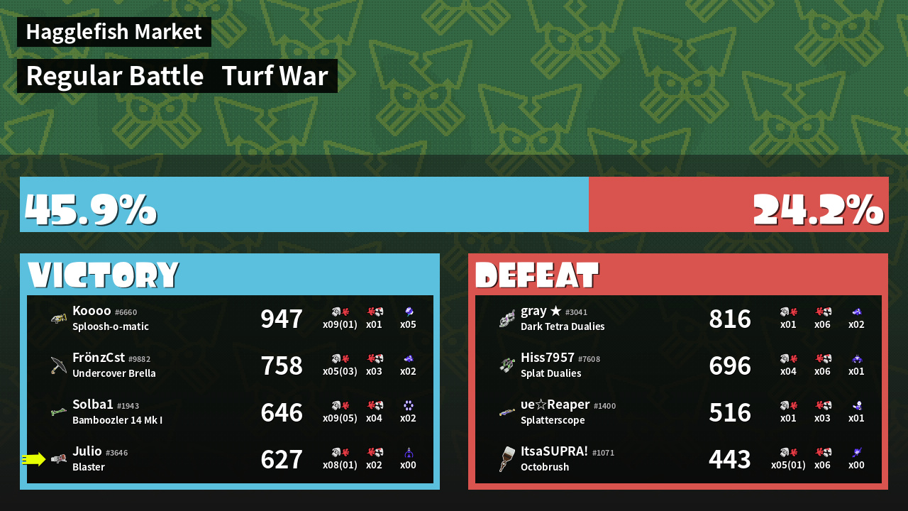 | Mode | Turf War - Regular Battle | ||