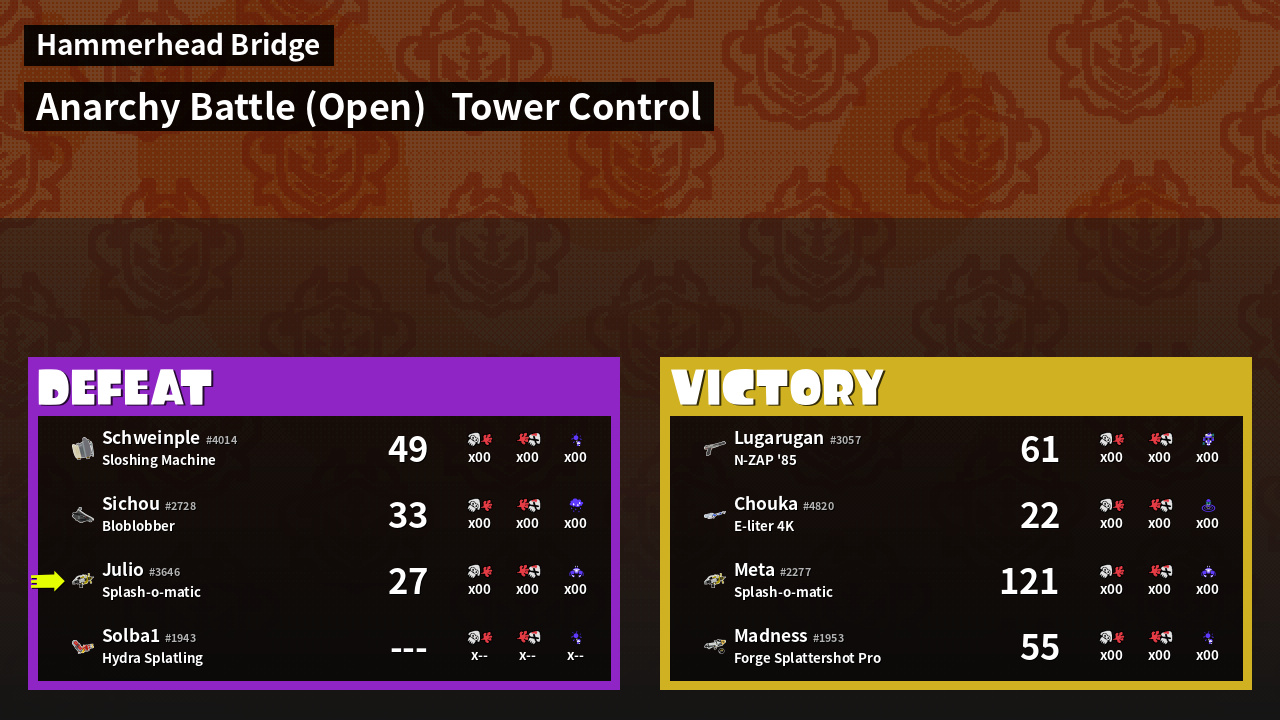 | Mode | Tower Control - Anarchy Battle (Open) | ||