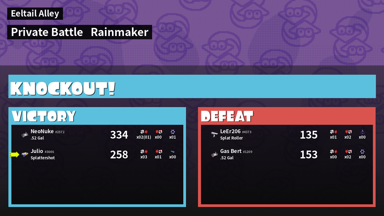| Medals | #1 Overall Splatter #1 Enemy Splatter #1 Damage Taker | ||