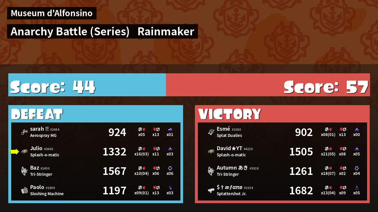 | Medals | #1 Overall Splatter #1 Enemy Splatter #1 Rainmaker Stopper | ||