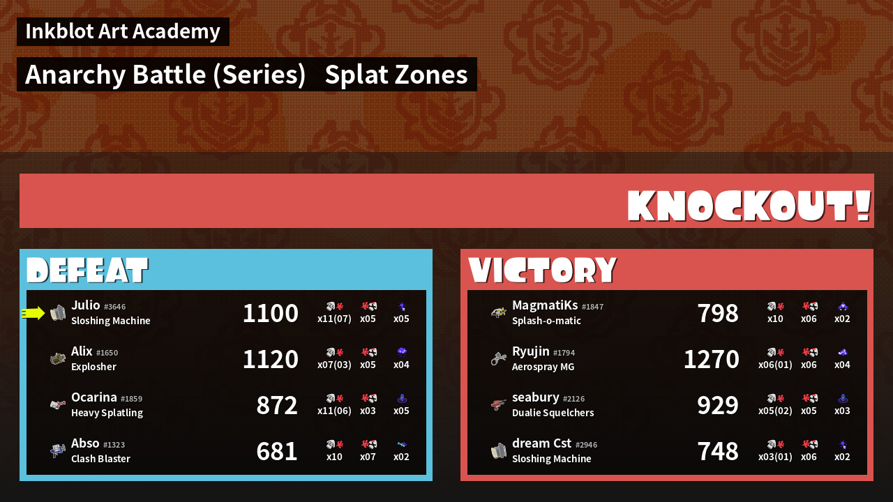 | Mode | Splat Zones - Anarchy Battle (Series) | ||